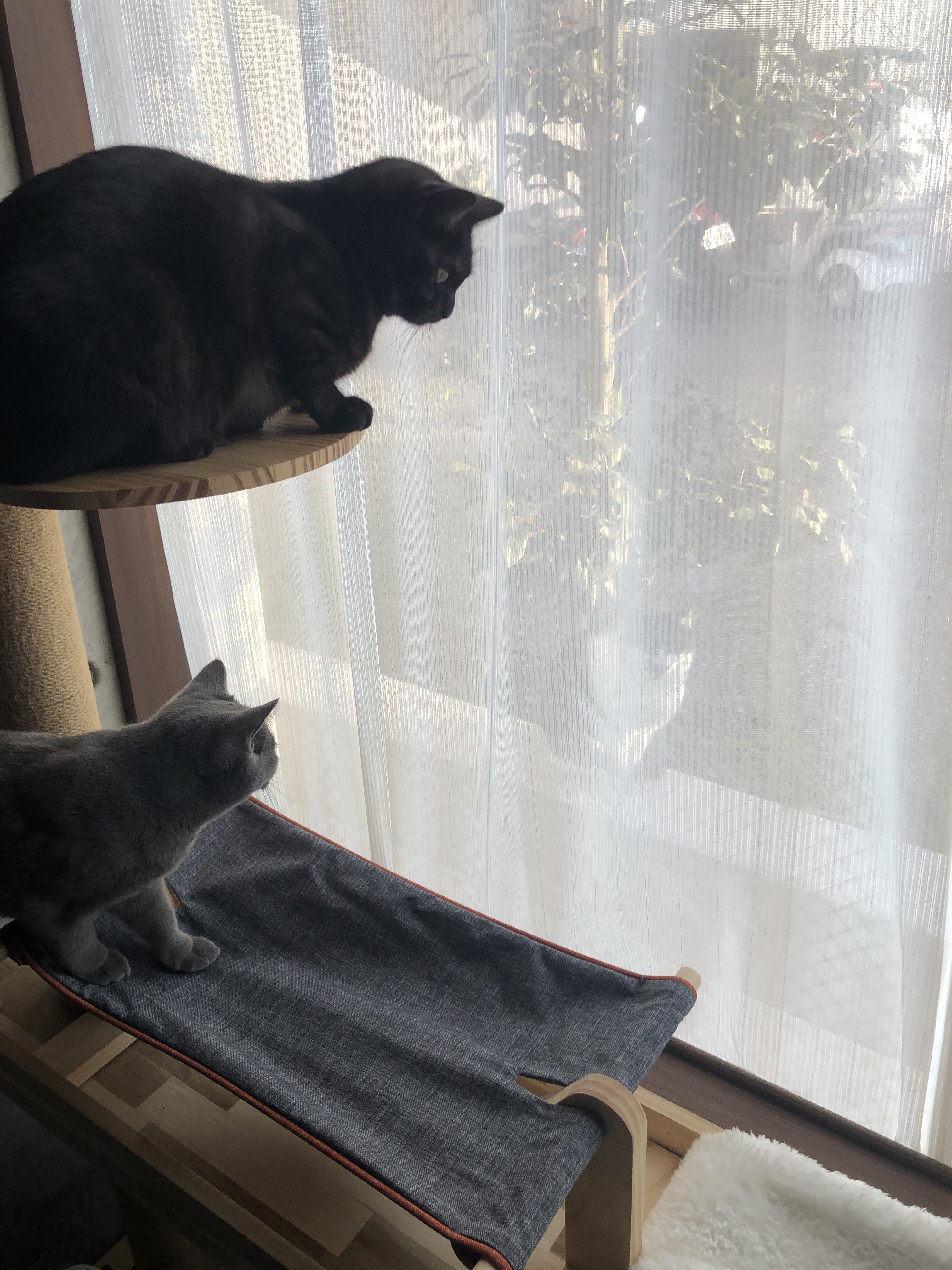 猫は外の世界にとても興味津々。外猫が来たり鳥がきたり。車や人間が通ったり。外の景色や時間…