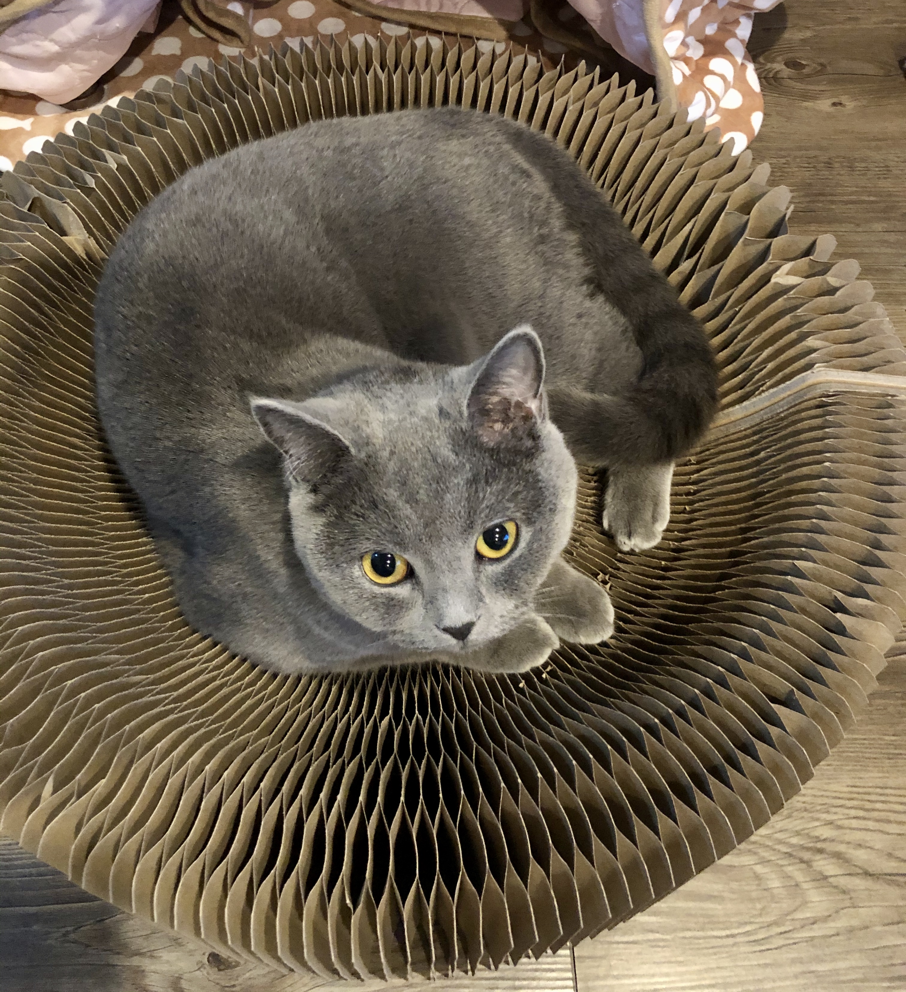 アコーディオンのように広げて使う爪とぎ。使わないときはコンパクトに畳めて便利。すり鉢のよ…